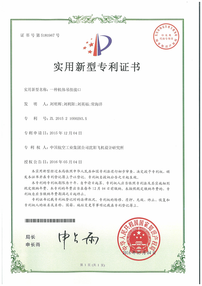 實(shí)用新型專(zhuān)利-資質(zhì)證書(shū)-新智航盛(遼寧)科技實(shí)業(yè)有限公司